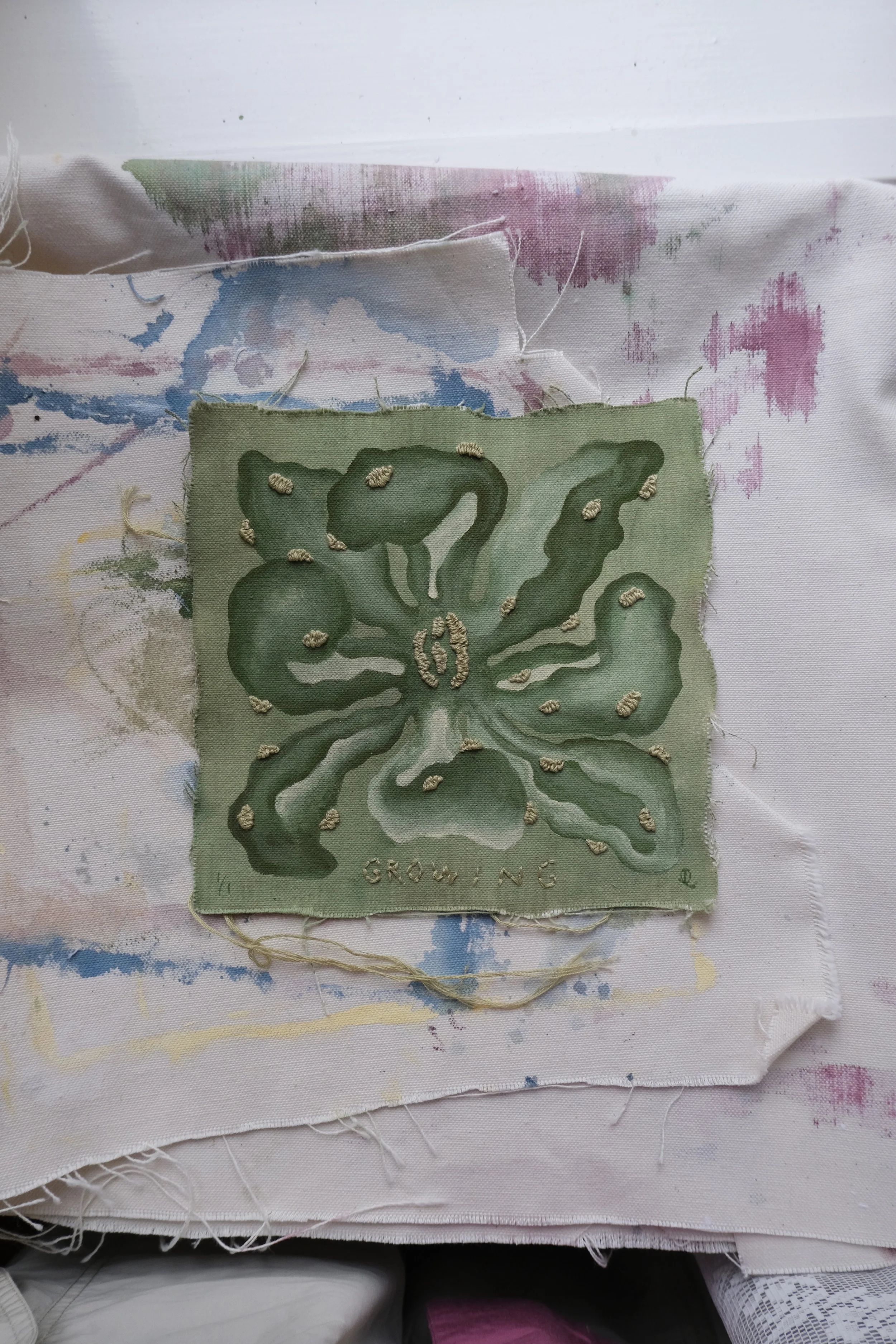 “Growing” Calm Flower — Gouache og brodering på lærred.
